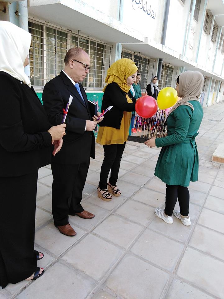 حضر مدير التربية والتعليم الأستاذ مازن المومني اليوم الاثنين ألموافق 8/10/2018 فعاليات الطابور الصباحي في مدرسة الرمثا الثانوية للبنات ترافقه السيدة فاطمة العامر من قسم النشاطات.