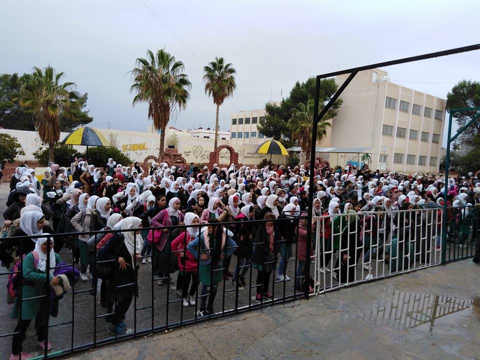 ضمن الجولات الميدانية لمدير التربية والتعليم الأستاذ مازن المومني حضر اليوم الأربعاء الموافق 14/11/2018 فعاليات الطابور الصباحي في مدرسة الخنساء الأساسية للبنات وبحضور مدير الشؤون الإدارية والمالية الأستاذ وحيد العمري.
