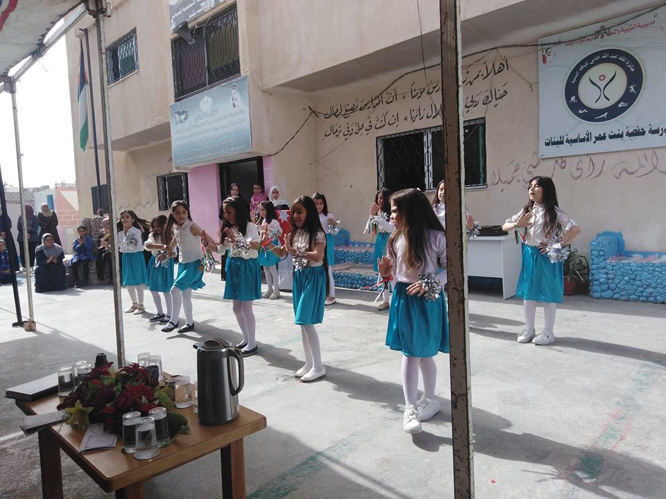 بعدها كلمة لمديرة المدرسة أسمى حجازي رحبت بالحضور ثم تحدثت عن دور جلالة الملك عبد الله الثاني ابن الحسين حفظه الله ورعاه بالمحافظة على المقدسات الإسلامية والمسيحية في القدس الشريف حيث خطى جلالته المفدى نهج اجداده ووالده جلالة الملك حسين بن طلال طيب الله ثراه في الدفاع عن الأماكن المقدسة ودعمها في المحافل الدولية ثم تحدثت عن انجازات المدرسة خلال العام الدراسي واستضافتها لمسابقة الخط العربي للسنة الثانية على التوالي.