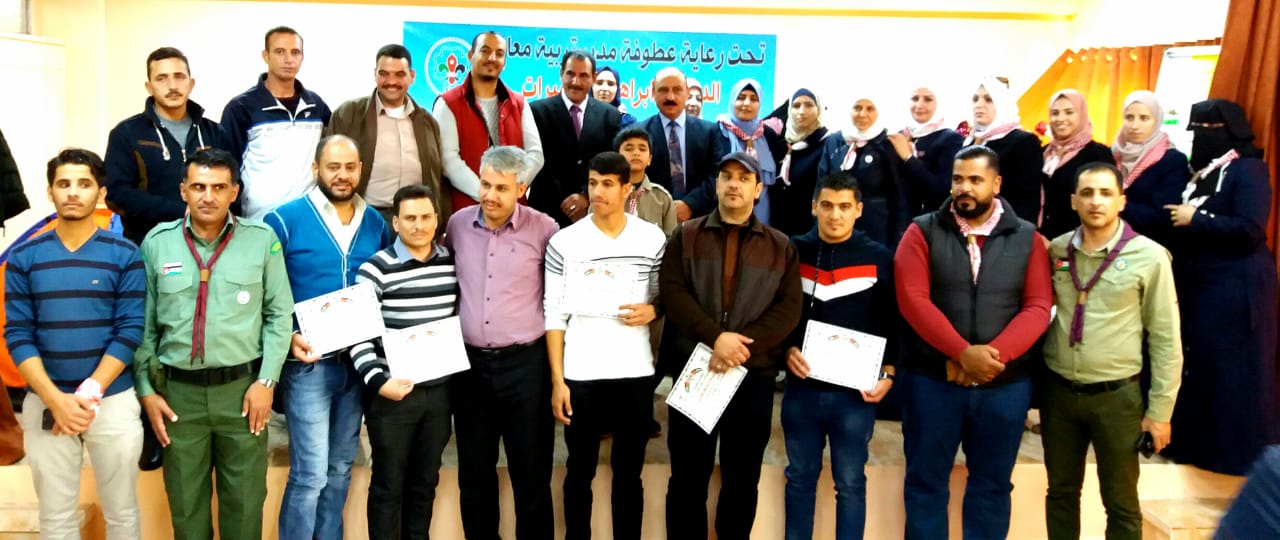 تحت رعايه عطوفة مدير التربيه والتعليم لمنطقه معان الدكتور ابراهيم سليمان الشقيرات وحضور رئيس المجلس التطوير التربوي في المديرية السيد عامر الشراري ، اختتمت فعاليات دراسة مساعد قائد وحدة كشفية و ارشادية و التي نظمتها مديرية التربية والتعليم لمنطقة معان واستضافتها مدرسة الضاحية الاساسية المختلطة .