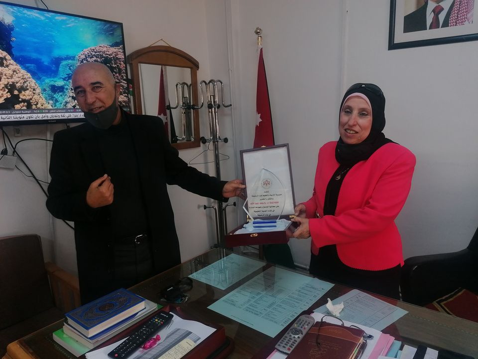 قام عطوفة مدير التربية والتعليم للواء الرصيفة الاستاذ خالد الحجاج وفور وصوله لموقع عمله الجديد بمديرية تربية لواء الرصيفة وبلفتة جميلة بتكريم عطوفة مديرة التربية والتعليم السابقة للواء الرصيفة (د. رابعه عبدالله) على جهودها وعطائها الموصول لمصلحة المسيرة التعليمية وبحضور كل من :
