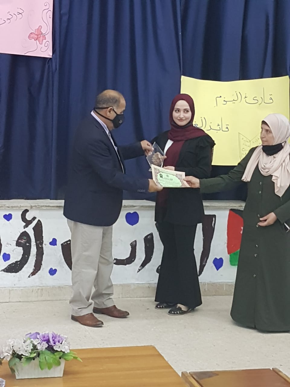 تشرفت مدرسة خديجة بنت خويلد اليوم الخميس بزيارة مدير الشؤون التعليمية والفنية د. أحمد الشرفات حيث قام عطوفته بتكريم نخبة مميزة من طالبات المدرسة اللواتي شاركن في مسابقتي تلاوة القرآن الكريم وتحدي القراءة وفوزهن بالمراكز المتقدمة بمسابقة القرآن الكريم على مستوى المديرية ومسابقة تحدي القراءة على مستوى المملكة وقام ايضاً بتكريم المعلمات اللواتي أشرفن على تدرييبهن ومتابعتهن، وأثنى على الجهود المبذولة من مديرة المدرسة والهيئة التعليمية والإدارية.