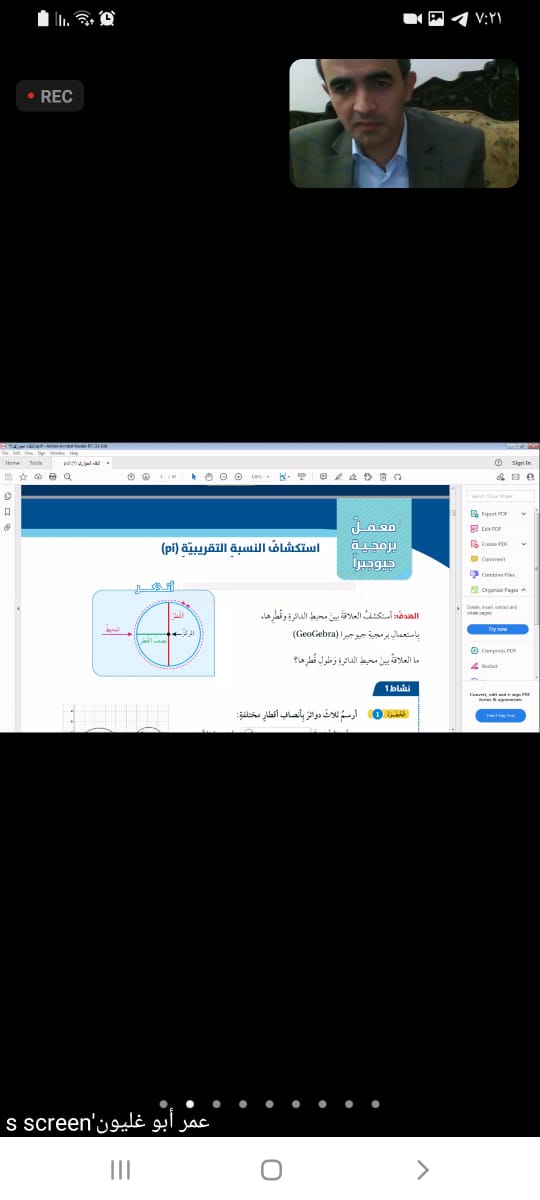 تحت رعاية عطوفة مدير التربيه والتعليم الدكتور محمد الشقيرات وبتنظيم وتنسيق قسم الاشراف متمثلا بالاستاذ سميح الحجاج ومشرف الرياضيات الاستاذ نزار الشماسين والمعلمة وعد محمد النوافله من مدرسة فاطمة الزهراء ، تم عقد لقاء حواري وإثرائي عبر برنامج زووم مع الدكتور عمر ابو غليون نائب مدير المركز الوطني لتطوير المناهج ورئيس فريق تأليف منهاج الرياضيات بحضور عدد من معلمي ومعلمات الرياضيات في المحافظه