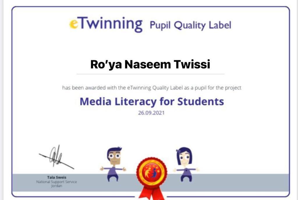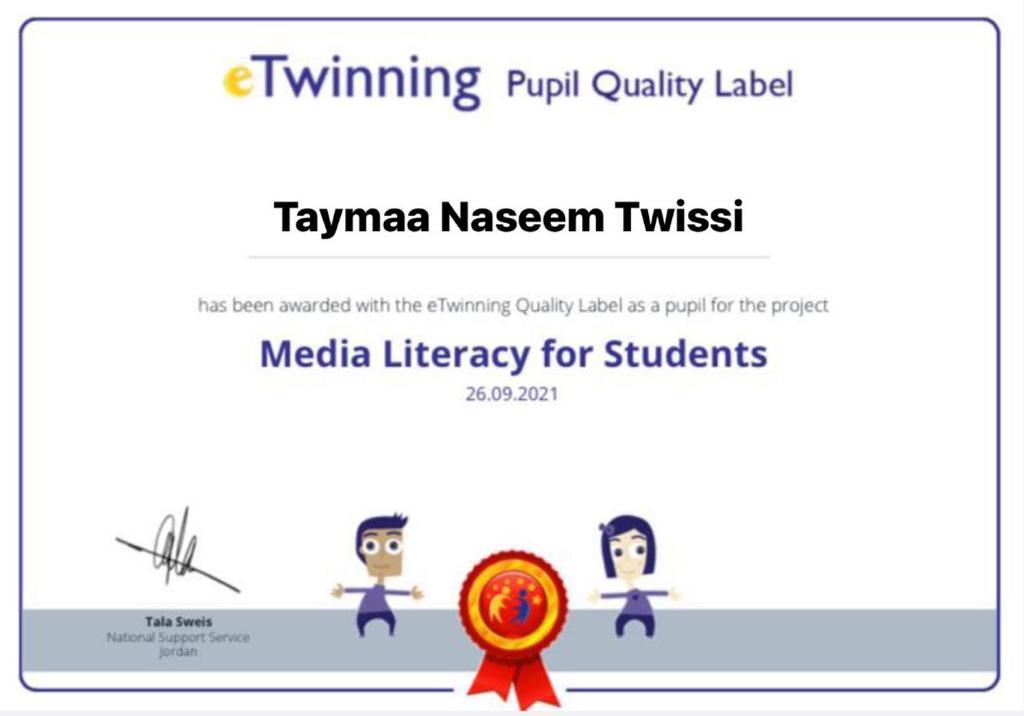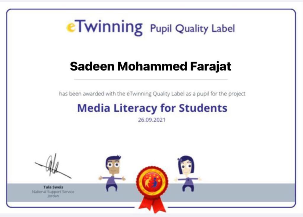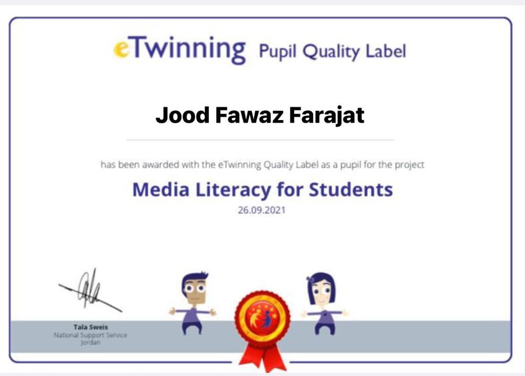 بمشاعر الفخر والاعتزاز يتقدم عطوفة مدير التربية والتعليم د. محمد الشقيرات والاسرة التربوية في لواء البترا باجملَ التهاني والتبريكات للمرشدة المتميزة (ختام المساعده) من مدرسة بنات وادي موسى الثانوية المختلطة للإنجاز المتميز وحصولها وطلبتها على علامة الجودة الأوروبية مشروع (محو الاميه الاعلامية للطلبة )