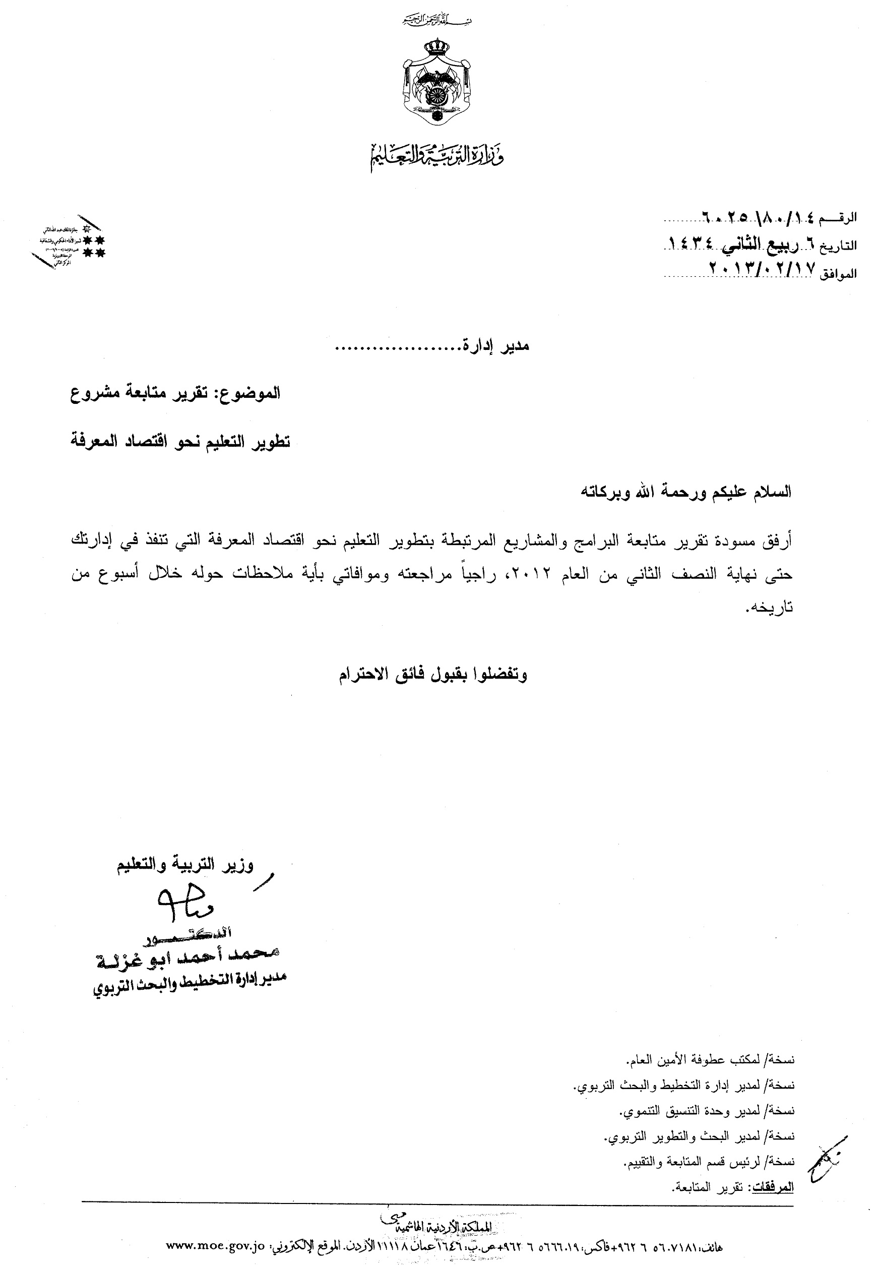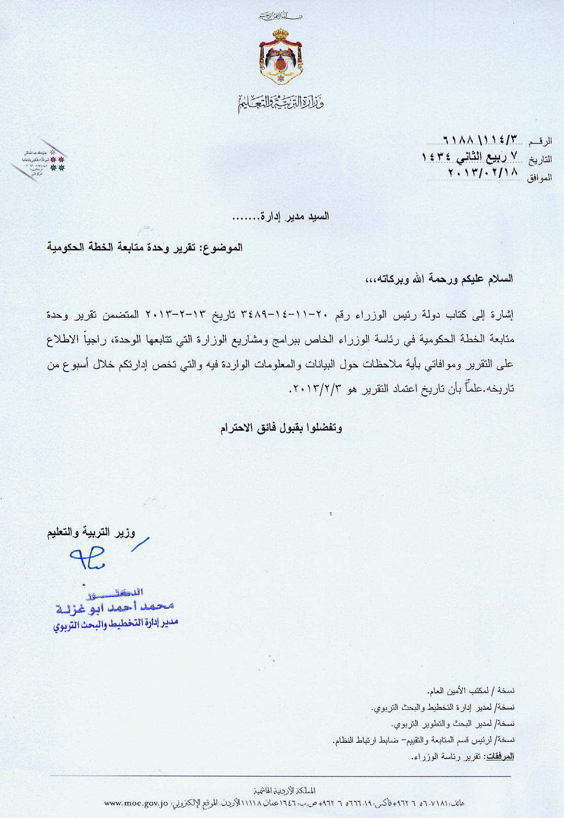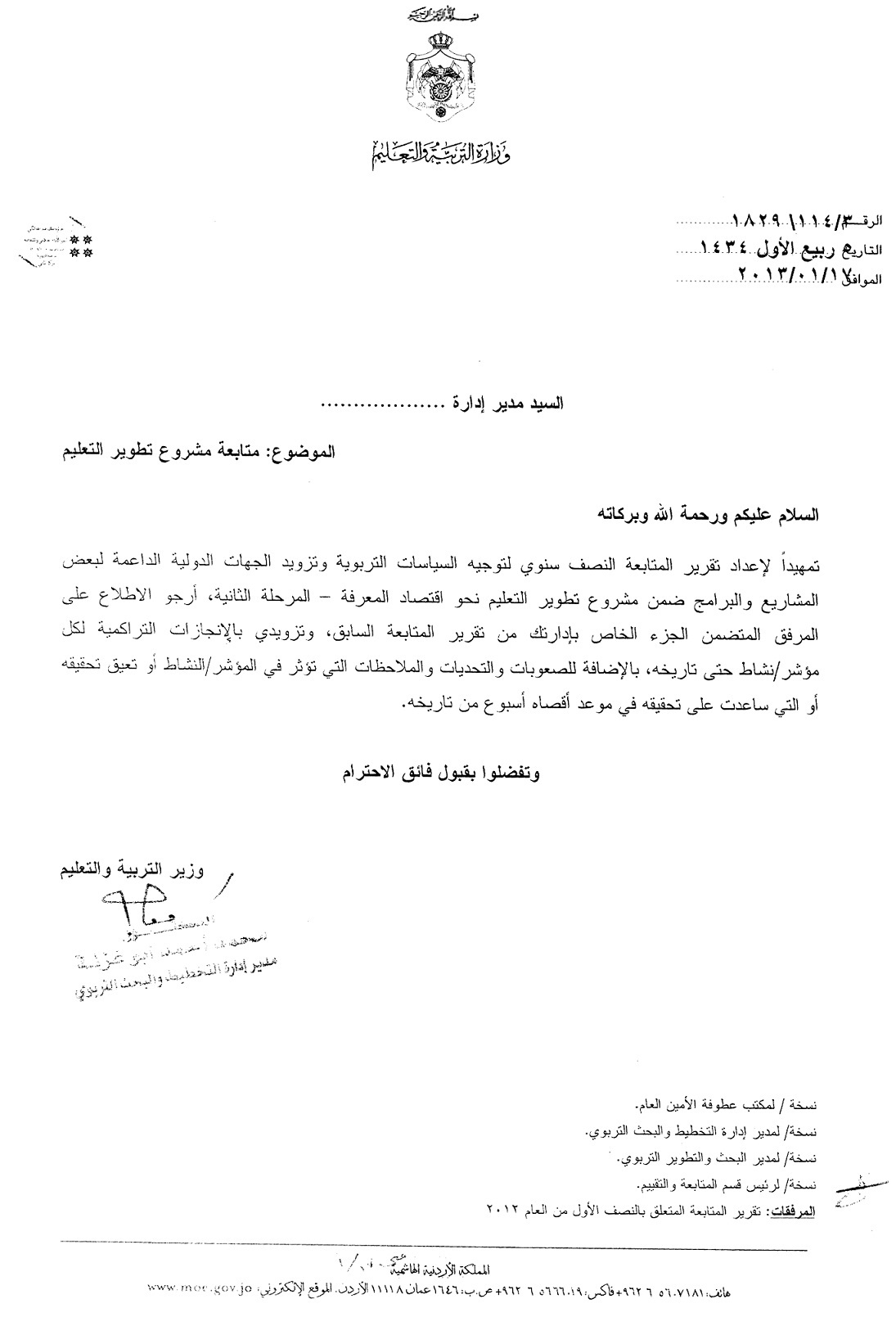 تقرير المتابعة والتقييم لبرنامج تطوير المدرسة والمديرية للعام 2013 |