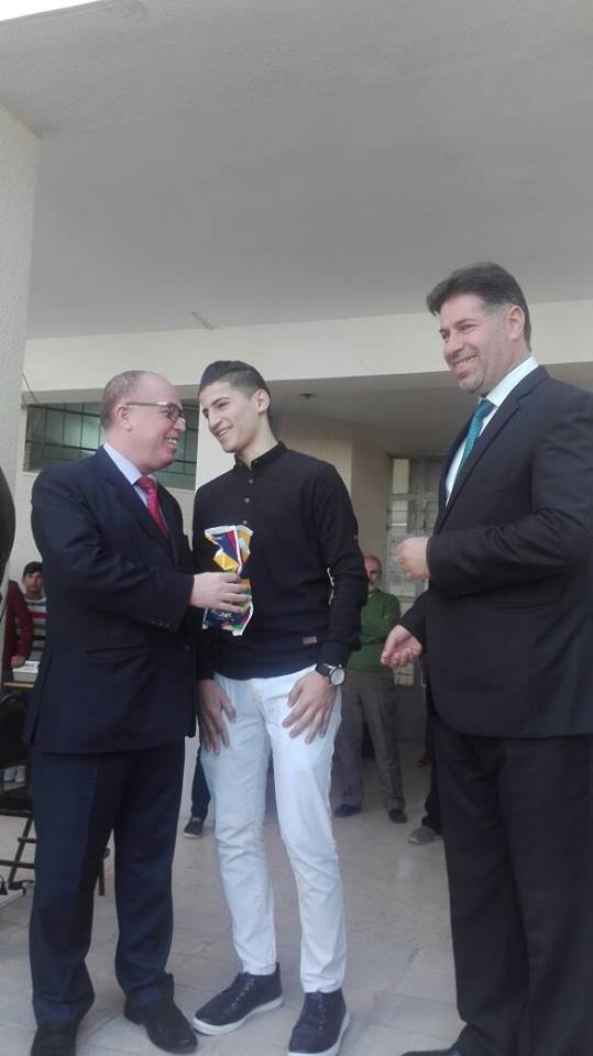 حضر عطوفة مدير التربية والتعليم اليوم الاثنين الموافق ٥/٣/٢٠١٨ فعاليات الطابور الصباحي في مدرسة أبي تمام الثانوية للبنين وبحضور رئيس شبكة تجمع مدرسة الاميرة هيا ونخبة من المجتمع المحلي حيث اشتمل على فقرات متنوعة ومميزة قدمها الطلبة المتفوقين من الثانوية العامة نالت إعجاب الجميع ثم قام عطوفته بتوزيع الجوائز التقديرية لهم متمنيا النجاح والتوفيق للجميع وفي النهاية شكر عطوفتة أعضاء المجتمع المحلي وإدارة المدرسة والمعلمين على جهودهم المبذولة.