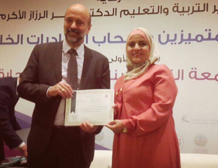 تكريم سفيرتنا وعضوة الجمعية الاء الحلو اليوم من معالي وزير التربية والتعليم لابداعها وابتكارها فكرة ريادية تخدم الطلبة في مدرستها (المبة بتحلهها )