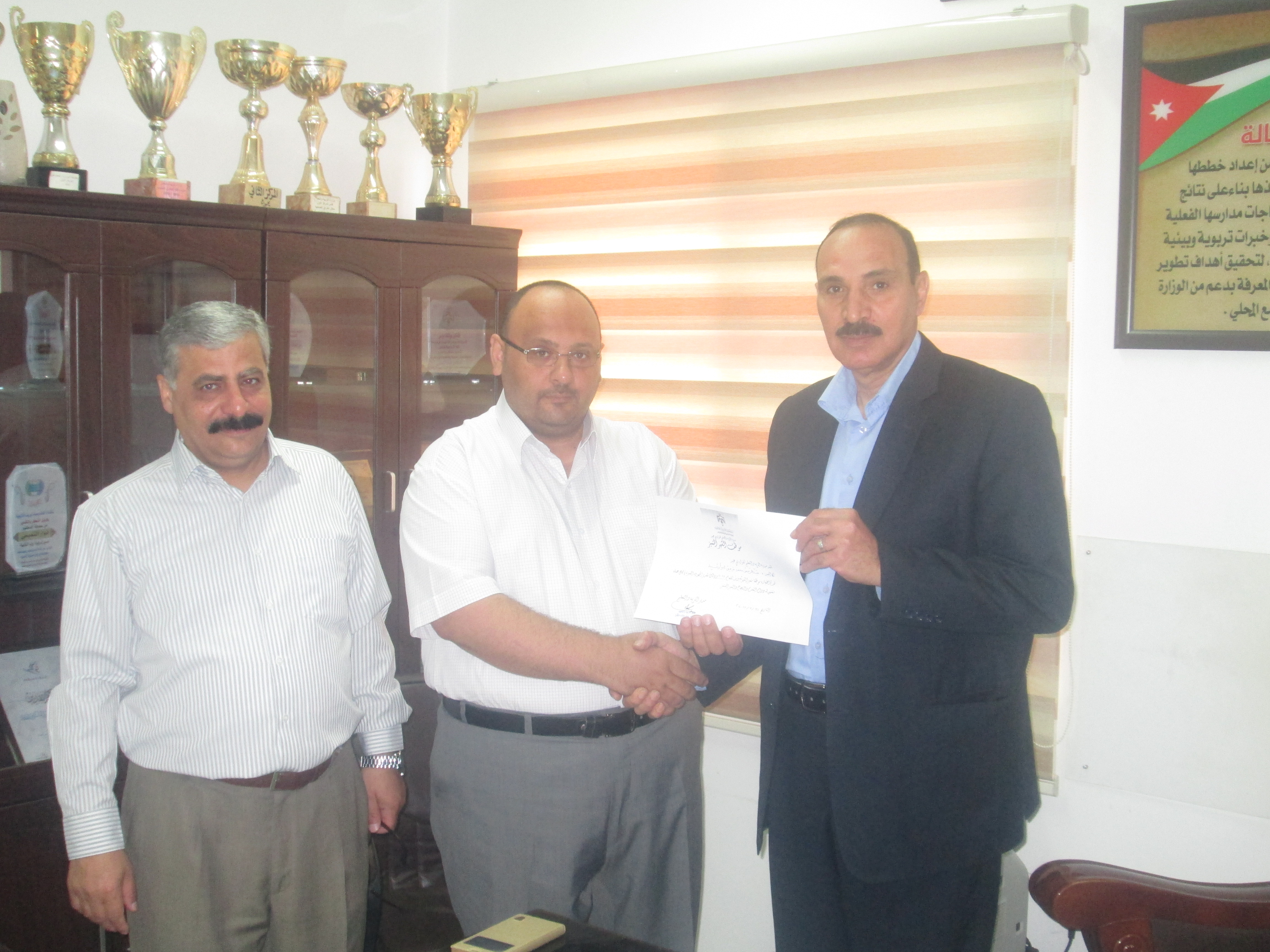 بناءً على تنسيب رئيس قسم الرقابة الداخلية السيد سالم الخصاونة واللجنة المشكلة لاختيار الموظف المتميز فقد قرر مدير التربية والتعليم للواء بني عبيد الدكتور منذر صلاح اختيار الدكتور عبدالرحمن محمد أبو ارشيد من قسم الامتحانات والاختبارات موظف الشهر المتميز لشهر تموز لجهوده وتفانيه في العمل متمنيا له مزيداً من التقدم والتوفيق
