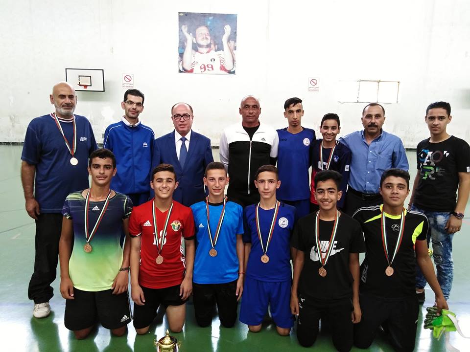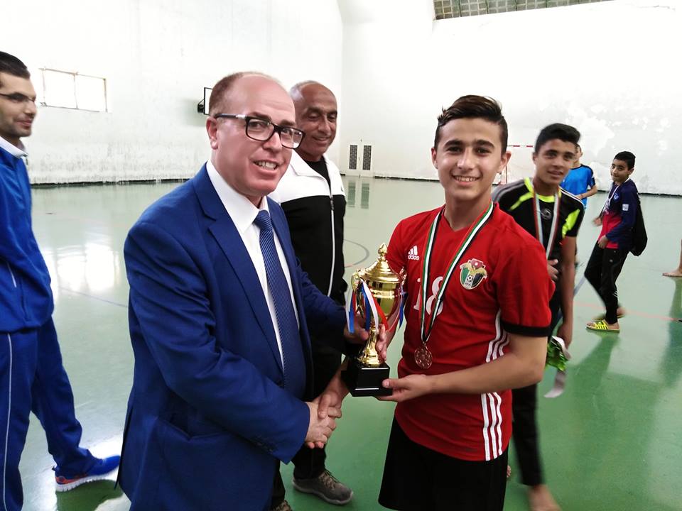 بعدها قام عطوفته بتسليم الميداليات على الفريقين ثم سلم كأس البطولة لفريق مدرسة الرمثا الثانوية للبنين .