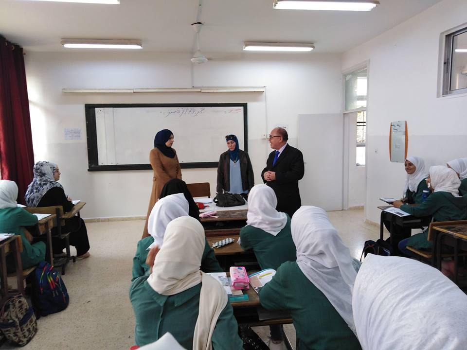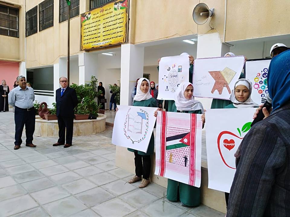 ضمن الجولات الميدانية لمدير التربية والتعليم الأستاذ مازن المومني حضر اليوم الخميس الموافق 11/10/2018فعاليات الطابور الصباحي في مدرسة جمانة الثانوية للبنات.