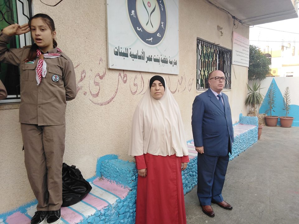 ضمن الجولات الميدانية لمدير التربية والتعليم الأستاذ مازن المومني حضر اليوم الثلاثاء الموافق 16/10/2018 فعاليات الطابور الصباحي في مدرسة حفصة بنت عمر الأساسية للبنات.