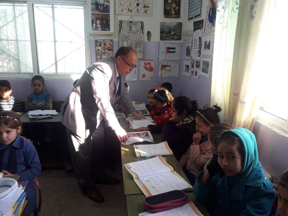 ---------------------------------------- ضمن الجولات الميدانية لمدير التربية والتعليم الأستاذ مازن المومني حضر اليوم الاثنين الموافق ١٠/١٢/٢٠١٨ فعاليات الطابور الصباحي لملحق مدرسة عمراوة الأساسية المختلطة، اشتمل الطابور على السلام الملكي وآيات من الذكر والنشيد الوطني وآيات من الذكر الحكيم وفقرات متنوعة. ثم تجول عطوفته في الغرف الصفية لمتابعة العملية التعلمية التعليمية حيث لاحظ ضعفا في المهارات الأساسية للغة العربية والإنجليزية، بعدها أبدى عطوفته توجهاته لزميلاته المعلمات بضرورة تطبيق مبادرة القراءة والحساب على الطلبة ووضع الخطط العلاجية لرفع المستوى التعليمي ومعالجة الضعف . متمنيا مزيدا من الجهد والتعاون لخدمة أبنائنا الطلبة.