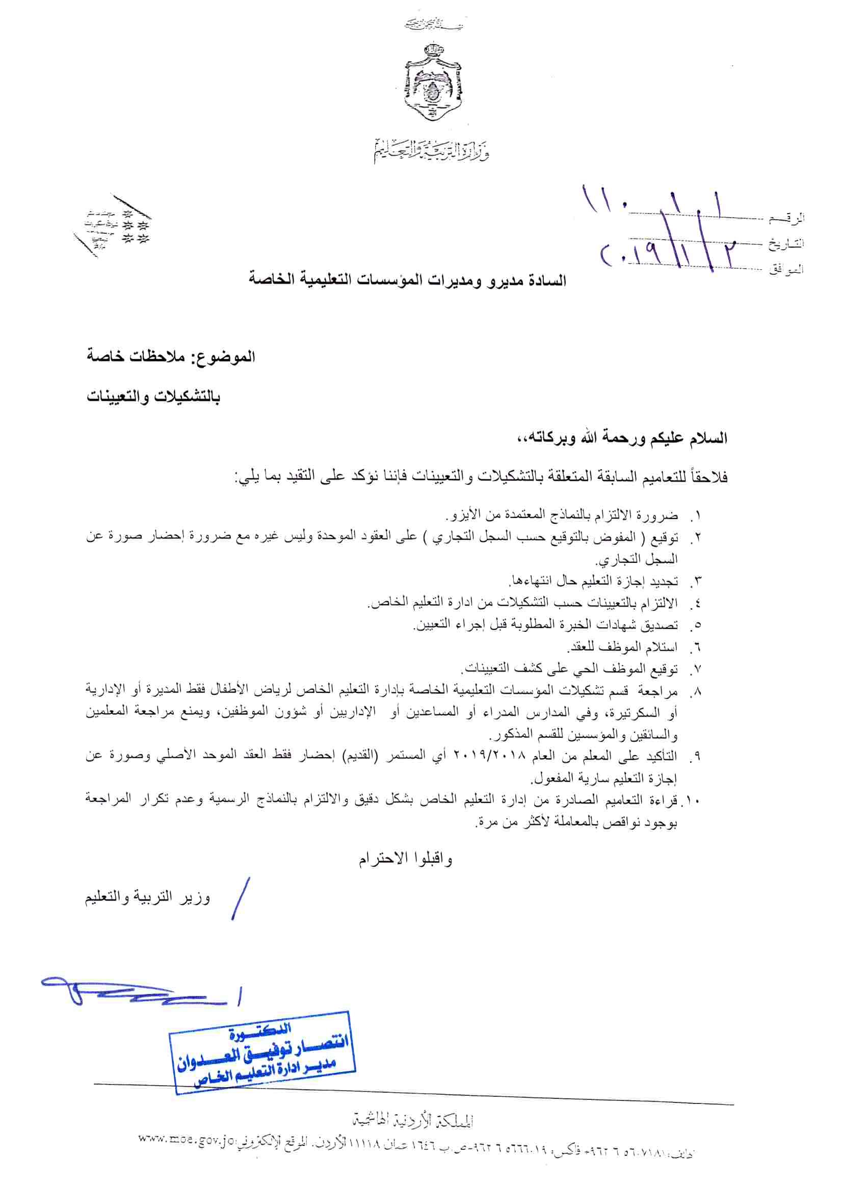 ملاحظة خاصة بالتشكيلات والتعيينات