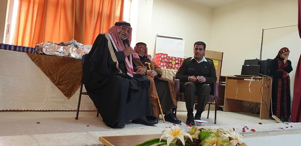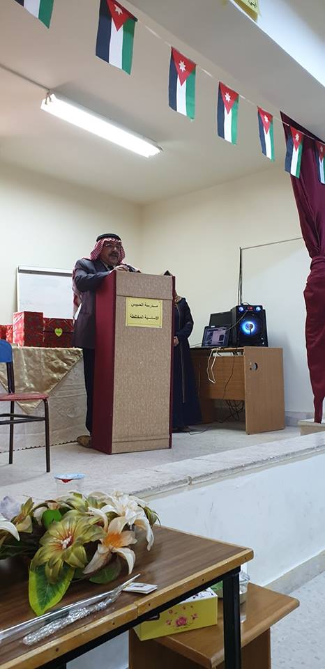 وكذلك تحدثت مديرة المدرسة ميسر الرواضية عن تعاون المجتمع المحلي وتقديمهم كل الدعم للمدرسة الفتية في إنشائها وتشتمل على فقرات فنية وثقافية وقصائد وطنية حيث ألقى الشاعر عبدالله السعيدات قصيدة بهذه المناسبة وفي نهاية الحفل تم توزيع الهدايا على الطلبة المتفوقين في جميع الأنشطة.