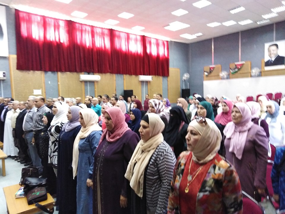 بدأ الاجتماع بالسلام الملكي بعدها رحب المومني بالحضور شاكرا المدراء والمديرات المتقاعدين جهودهم طيلة خدمة في وزارة التربية والتعليم وحرصهم على مدارسهم بأن تظل بالمقدمة بين المدارس.