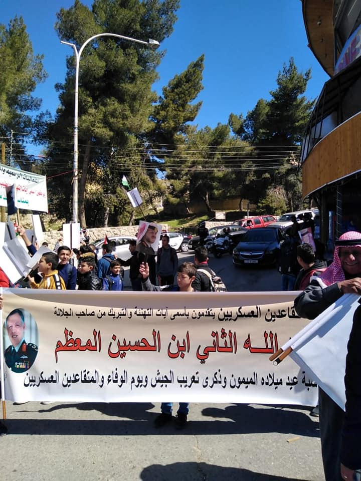 بمبادرة من المتقاعدين العسكريين في لواء البترا انطلقت مسيرة الولاء والانتماء بمناسبة عيد ميلاد جلالة الملك عبداللة الثاني بن الحسين من وسط البلد إلى مركز الزوار وقد كان لمديرية التربية والتعليم للواء البترا دور فاعل بمشاركة عطوفة مدير التربية الأستاذ محمد الشقيرات والأستاذ ياسين السلامين / مدير تربية سابق، وقسم النشاطات، ومجموعة من أبنائنا الطلبة، حيث اشتملت الفعالية على صيحات وهتافات وأغاني وطنية تجسد معاني الولاء والانتماء والالتفاف حول الراية الهاشمية.