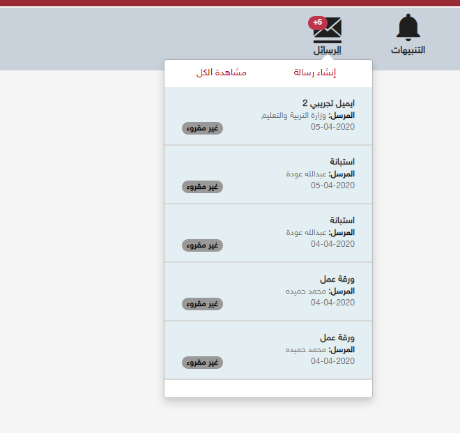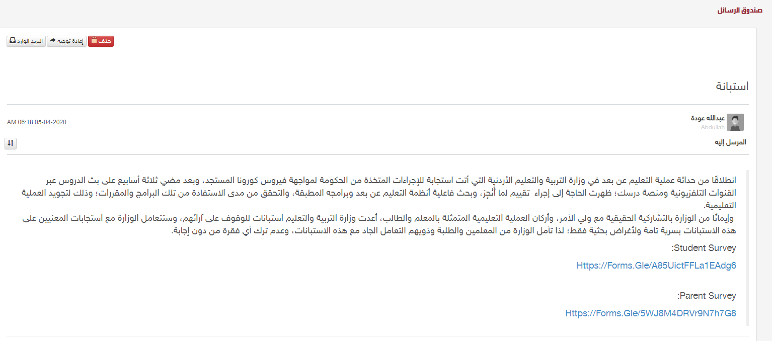 من ثم اختيار الرسالة بعنوان إستبانه مرسلة من عبد الله عودة بتاريخ 2020/5/4