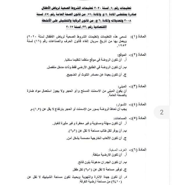تعليمات الشروط الصحية لرياض الأطفال ٢٠٢٠