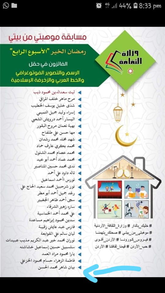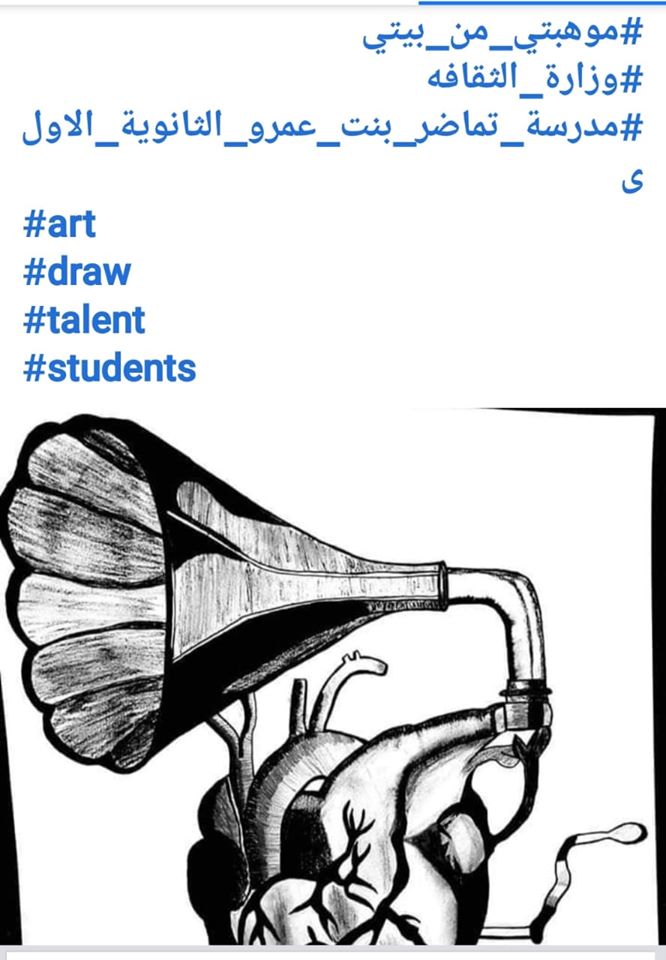 فازت لأنها ربطت بين القلب والموسيقى بين النبض والصوت نبارك لطالبتنا التماضرية هذا الفوز على مستوى المملكة في مسابقة الرسم المطروحة من قبل وزارة الثقافة #موهبتي_من_بيتي أضاف هذا الفوز إنجازًا جديدًا لك ولمدرستك مبارك لك عزيزتي الفوز ما زلنا نستقبل الصور لنشرها على صفحة الفنون الخاصة بالمدرسة.