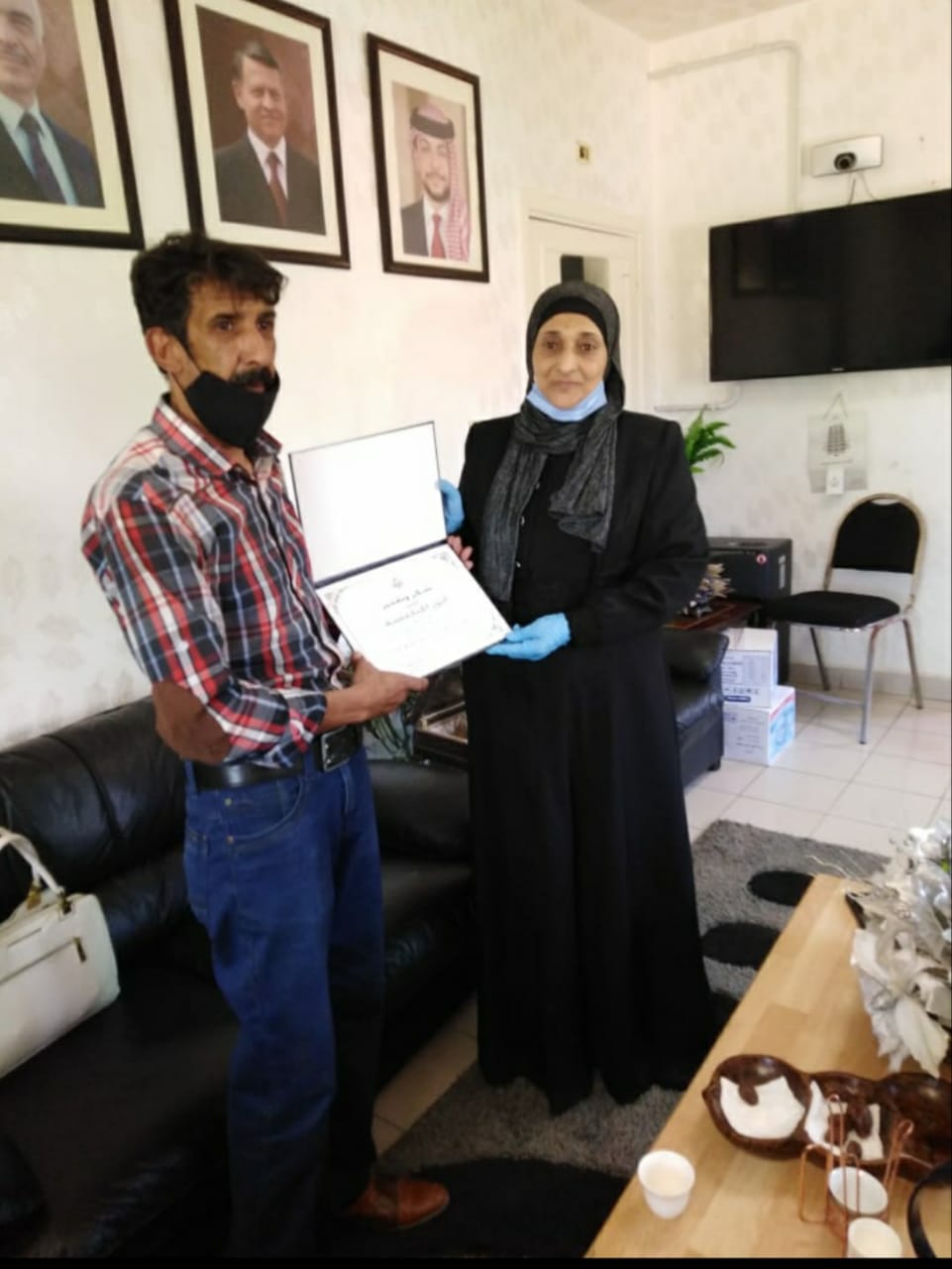 حيث قامت عطوفتها بتكريم المشرفين على مبادرة " لاجلك علمنا مستمرون بالتعلم" الدكتورة زهور الزبن والدكتور ماجد الرضاونه والدكتورة فاتن الهروط ومدراء المدارس المشاركة في المبادرة مدير مدرسة المشقر الثانوية للبنين السيد فواز العقيل ومديرة مدرسة منشية حسبان الثانوية للبنات السيدة مها الزبيدي ومديرة مدرسة العدسية الثانوية للبنات السيدة اريج العفيشات ومديرة مدرسة سيل حسبان الاساسية المختلطة السيدة مريم العدوان وبعض الزملاء الذين كان لهم مساهمه المشرف التربوي السيد امين القعايده والمشرف التربوي السيد فيصل الكعابنه والمبرمج سعيد الدوخ والسائق قتيبة الشوفيين والسيد انور المناعسه ومحمد مرعي .