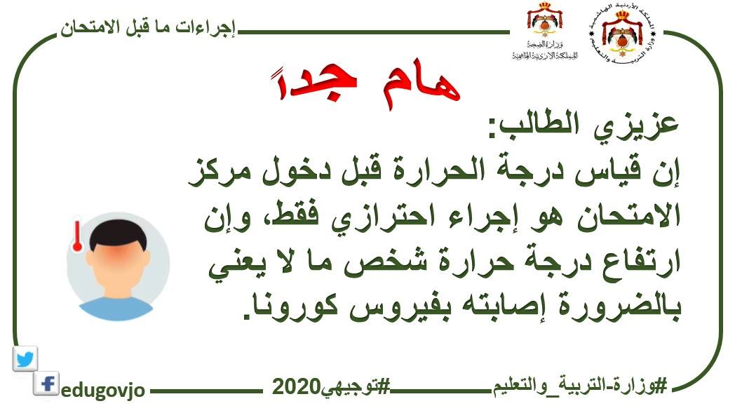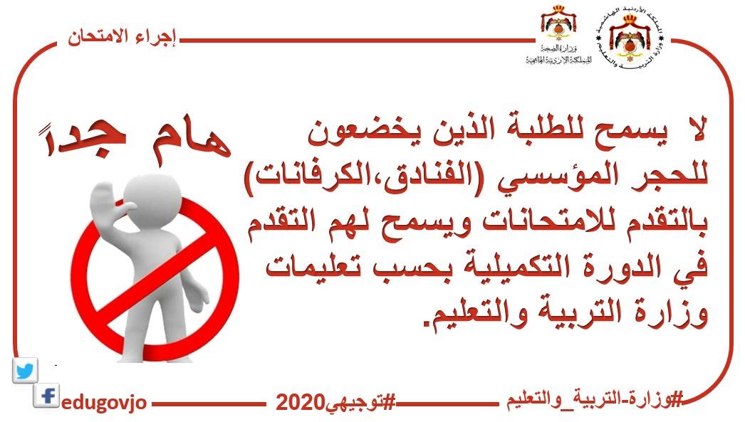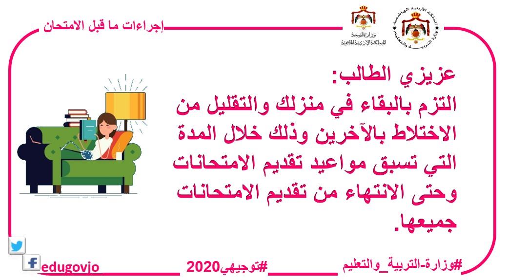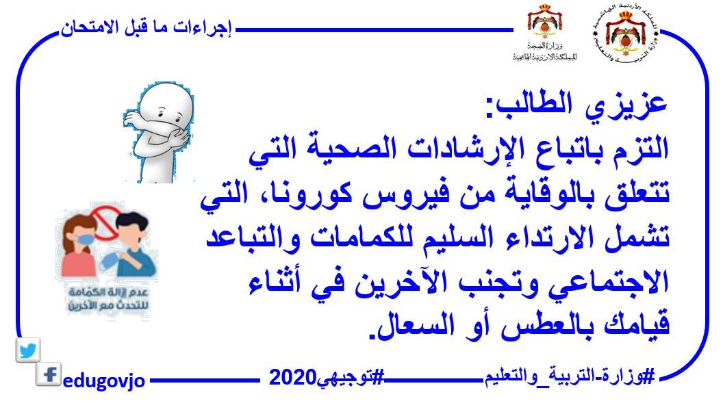 الرئيسية/ الاخبار / تعليمات الشروط الصحية الواجب اتباعها لطلبة الثانوية العامة لتربية لواء ناعور
