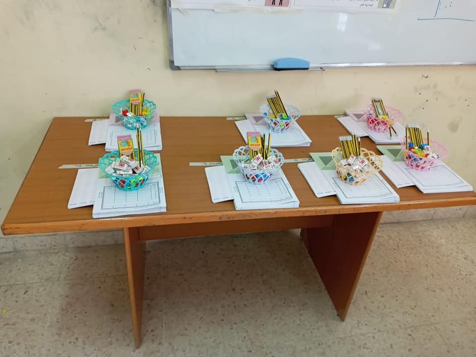 تجهيز القرطاسية لتسليمها لطلبة امتحان الثانوية العامة في مدرسة حي الجندي