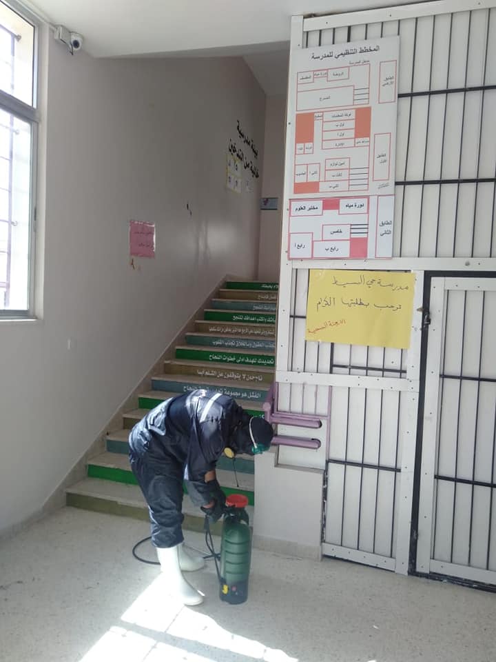 ضمن الجهود الحثيثة والاجراءات الوقائية للظروف الاستثنائية لجائحة كورونا تم القيام بحملة تعقيم لمدارس لواء البترا بالتعاون والتنسيق مع سلطة اقليم البترا / مديرية البيئة وذلك ضمن استعدادات المديرية لإستقبال العام الجديد وفق الاشتراطات الصحية وبروتوكولات عودة ابنائنا الطلبة الى مدارسهم.