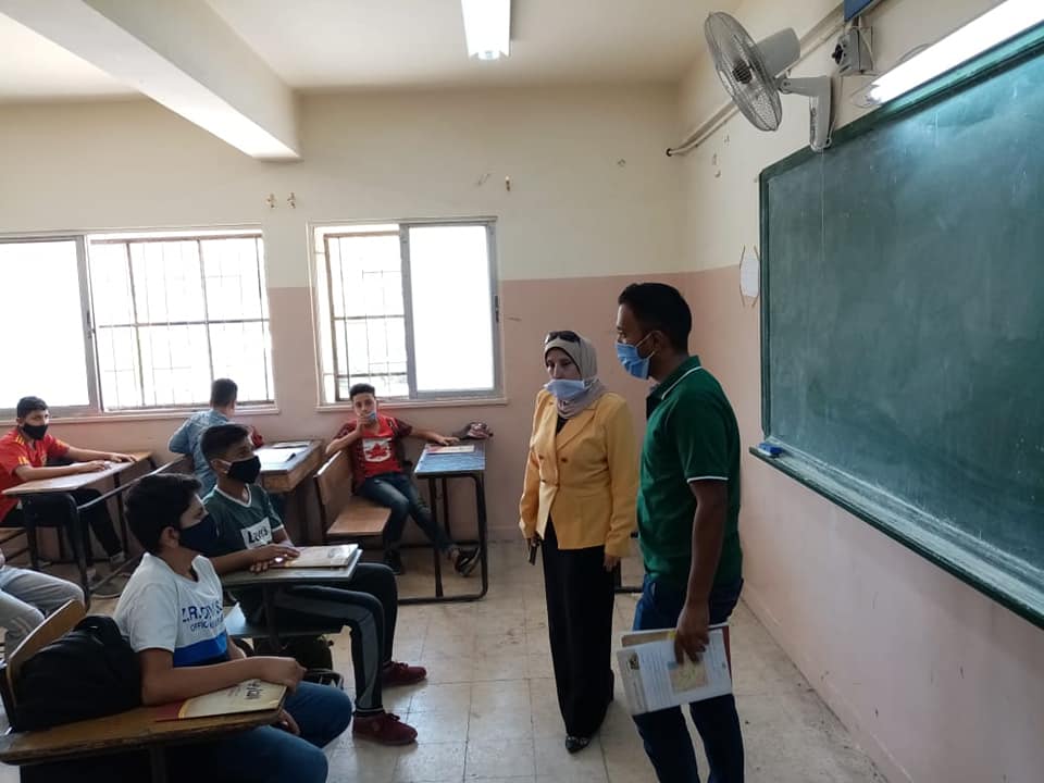 وقامت بتفقد المدارس والتأكد من جاهزيتها وزيارة الطلاب بغرفهم الصفية ولقاء الكوادر التعليمية والادارية.