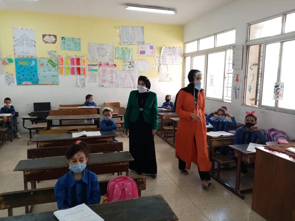 حيث قامت بتفقد المدارس ومرافقها والالتزام بالبروتوكول الصحي