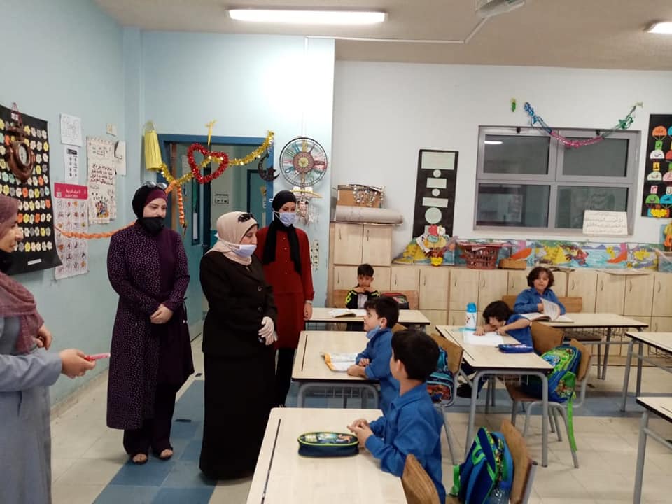 حيث قامت عطوفتها بتفقد الغرف الصفية وضمان الالتزام بالبروتوكول الصحي من قبل الهيئات الادارية والتعليمية والطلاب وقامت بتفقد دخول المعلمات على منصة درسك لمتابعة الطلبة.