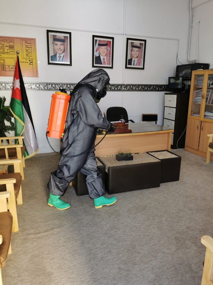 قام فريق من السلاح الهندسي الملكي بتعقيم كل من مدرسة مكة الاساسية المختلطة وزيد بن الخطاب الاساسية للبنين والفرح الخاصة بعد تسجيل اصابات بفيروس كورونا.