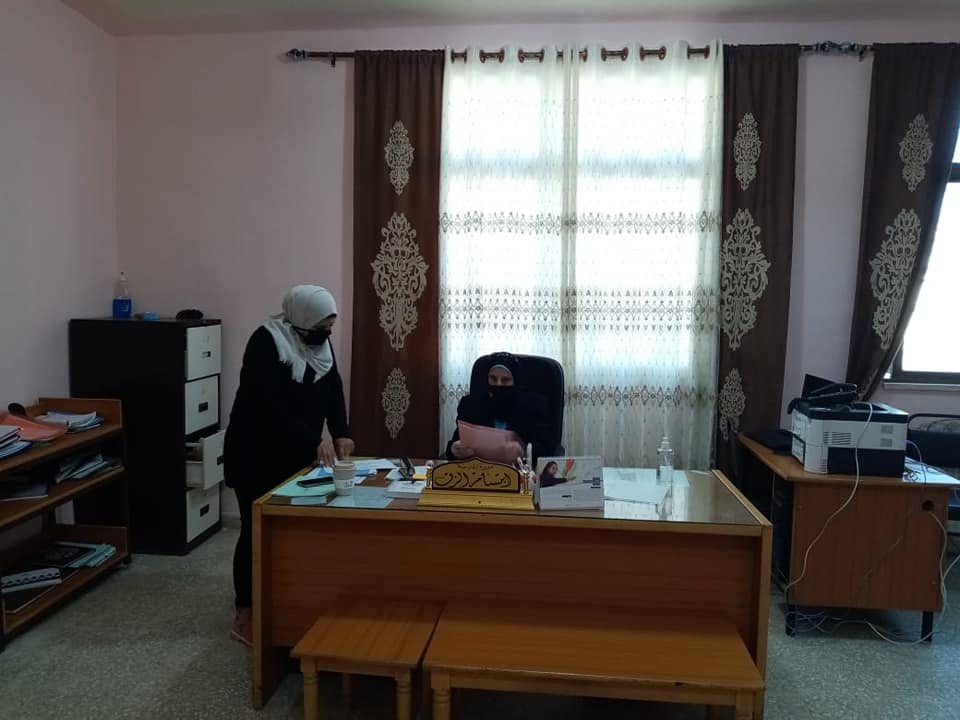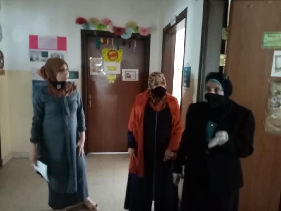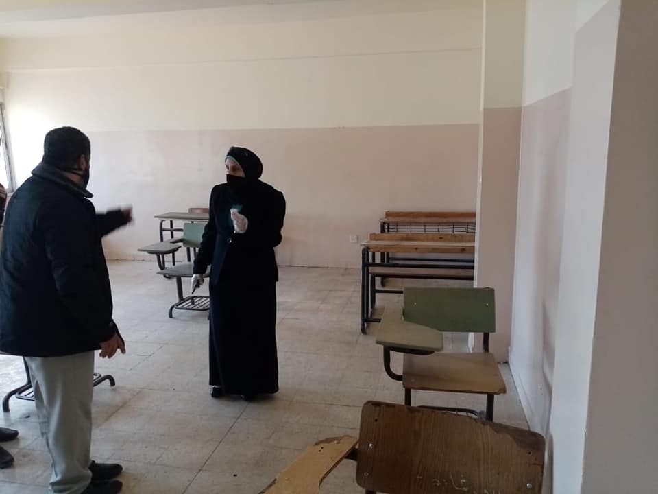 حيث قامت بتفقد جاهزية قاعات الثانوية العامة وتفقد تفاعل المعلمات والطلبة على منصة درسك والتأكيد على نظافة المرافق والالتزام بالبروتوكول الصحي.