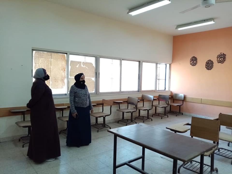 حيث قامت بتفقد المدارس ومرافقها وافقد جاهزيتها لامتحان الثانوية العامة والتأكيد على النظافة العامة والالتزام بالبروتوكول الصحي.