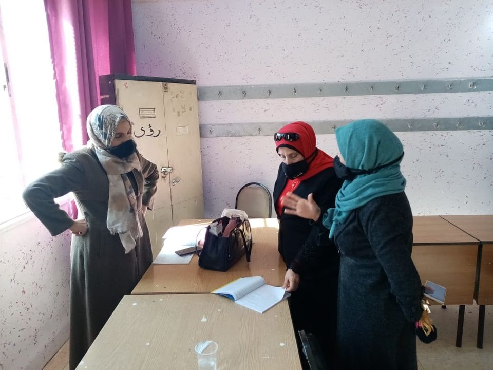 حيث قامت عطوفتها بتفقد المرافق والتأكد من الالتزام بالبروتوكول الصحي واستمرارية التواصل مع الطلاب ومتابعتهم عبر منصة درسك.