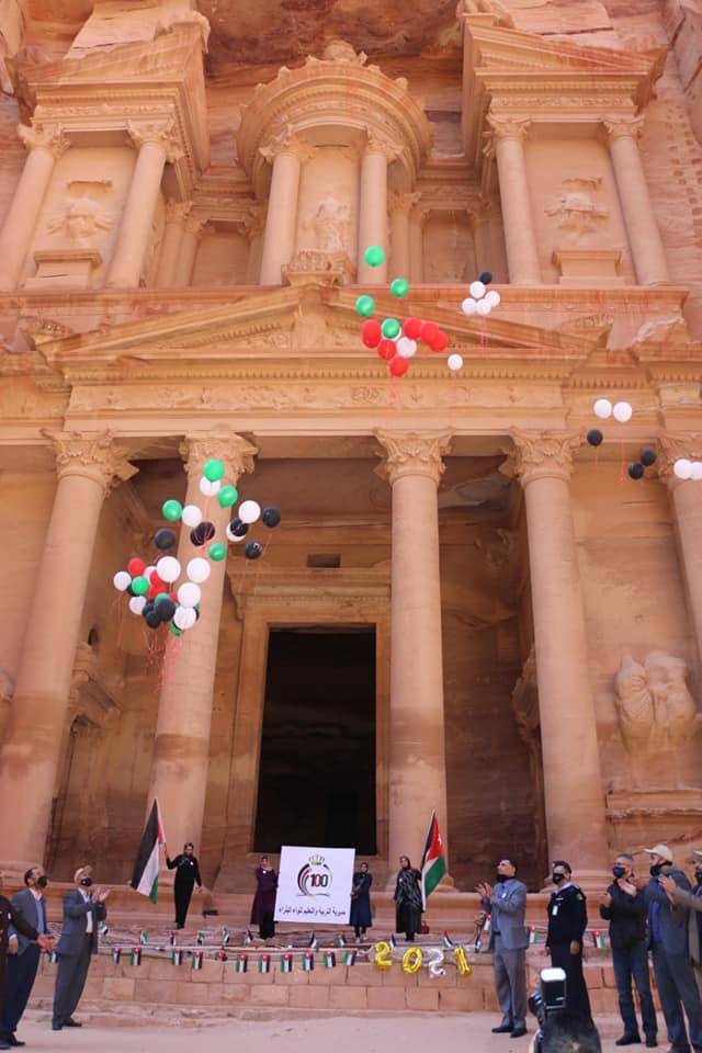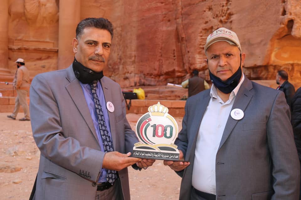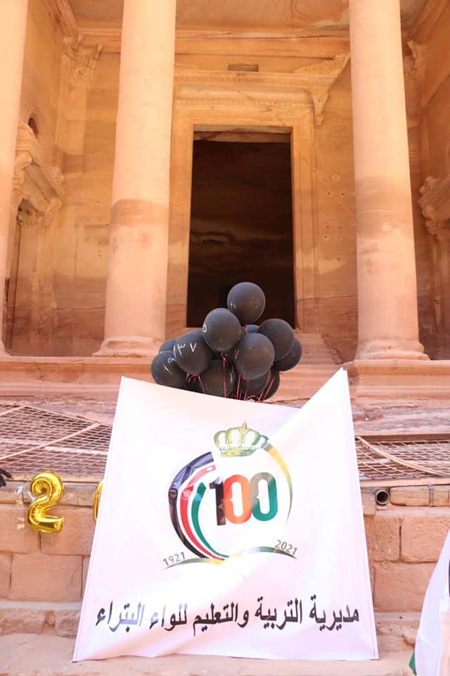 ضمن احتفالات المملكة بإشهار شعار مئوية الدولة الأردنية قامت مديرية التربية والتعليم للواء البترا بإطلاق شعار المئوية من أمام الخزنة في المدينة الوردية وبحضور عطوفة مدير التربية والتعليم والمدراء المختصين الاستاذ علي النعيمات والاستاذ عبدالله الصباحين وعطوفة متصرف لواء البترا منصور العلاوين وعطوفة مفوض البنية التحتية د.ماجد الحسنات واجهزة الامن والمخابرات والاستخبارات ورئيس مجالس التطوير التربوي حيث رحب عطوفة مدير التربية والتعليم الاستاذ محمد الشقيرات بالحضور مستعرضاً مسيرة الاردن التي تلخصت في مائة عام من الحضارة والنهضة والتقدم والبناء ، مباركاً بكل الفخر لمملكتنا وكل عام والوطن وقائد الوطن بألف خير.