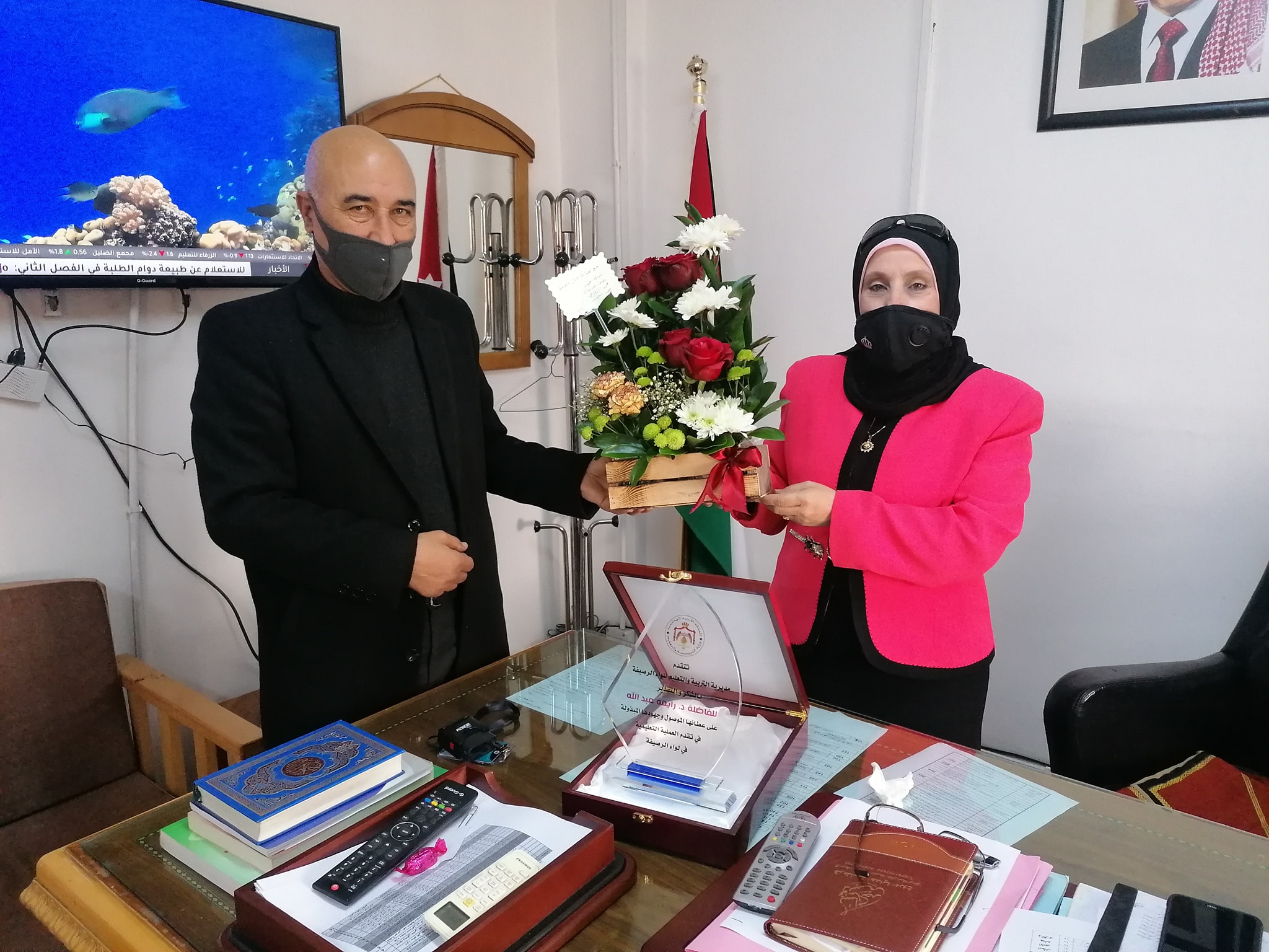 قام عطوفة مدير التربية والتعليم للواء الرصيفة الاستاذ خالد الحجاج وفور وصوله لموقع عمله الجديد بمديرية تربية لواء الرصيفة وبلفتة جميلة بتكريم عطوفة مديرة التربية والتعليم السابقة للواء الرصيفة (د. رابعه عبدالله) على جهودها وعطائها الموصول لمصلحة المسيرة التعليمية وبحضور كل من :