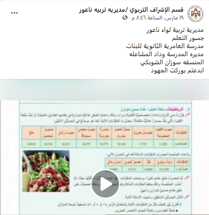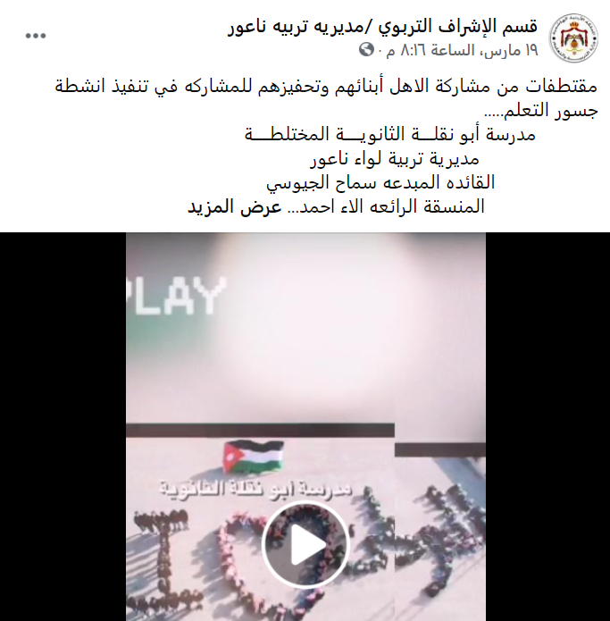 بتوجيهات من عطوفة مديرة التربية الدكتوره وضحا المحارب وإشراف رئيسة قسم الإشراف د زهور الزبن تم اطلاق مبادرة جسور التعلم للتواصل بأنشطة إثرائية و إضافية بين الطلبة و المعلمين و المجتمع المحلي لإثراء و إكتساب مهارات تعليمية و تعلمية و حياتية للطلبة في ظل جانحة كورونا و التعلم عن بعد.