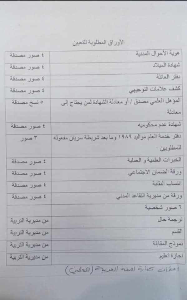 لغايات استكمال إجراءات التعيين، مصطحبين معهم الوثائق المبينة في الجدول المرفق.
