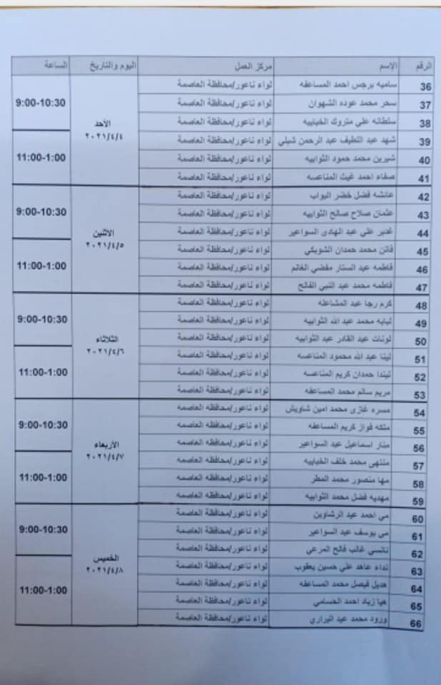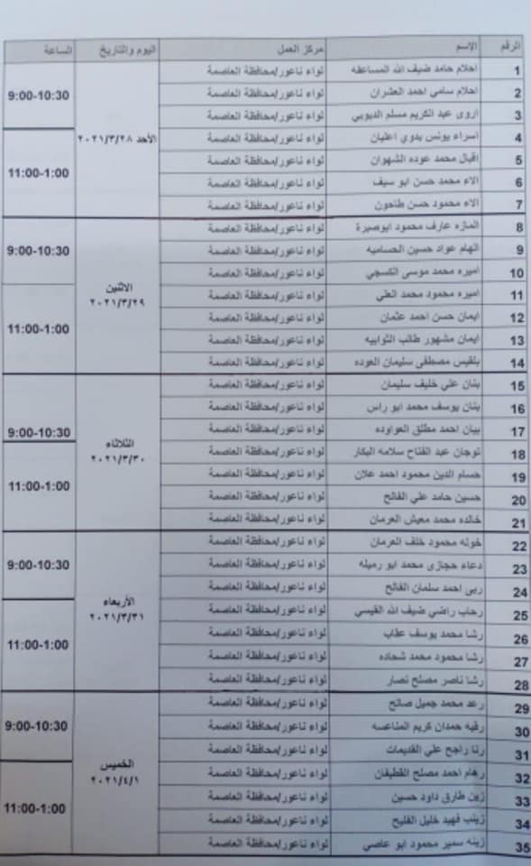 عليكم مراجعة مركز مديرية التربية و التعليم للواء ناعور وذلك وفق الجدول الزمني الموجود بجانب اسمائهم وذلك