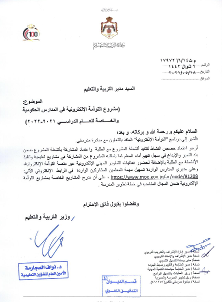 التقـييم السنوي لأداء المـــدراء والمعلمــين المشاركين بمشروع" التوأمة الالكترونية"