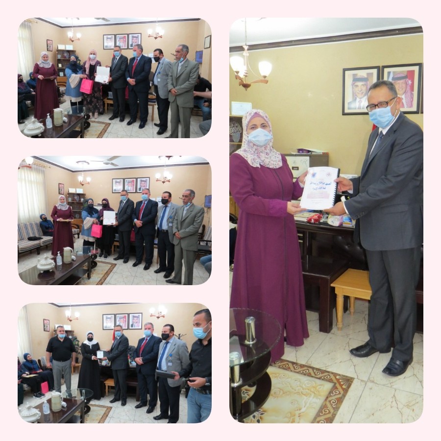 كرَّمَ عطوفة مدير التربية والتعليم الدكتور معن الشناق في مكتبه اليوم الخميس الموافق 10 / 6 / 2021 وبحضور مدير الشؤون التعليمية الأستاذ جهاد الروابدة ومدير الشؤون الإدارية والمالية الدكتور محمد رضا بني إرشيد، ورئيس قسم النشاطات التربوية الأستاذ سمير الخطيب، ومسؤول النشاط الثقافي الأستاذ خليفة بني إرشيد، ومسؤول النشاط الفني الأستاذ محمود النعيمي، ومسؤول الإعلام في المديرية الأستاذ محمد مأمون، الطلبة الفائزين بمسابقة مقالة باللغة الإنجليزية تحت عنوان (التعلم عن بعد)، والتي أطلقتها مدرسة جنين الصفا الثانوية الشاملة المختلطة من قبل المعلمة ساجدة الزعبي، وتحت إشراف مشرفي اللغة الإنجليزية د.رياض بني يونس، ود.محمود مستريحي، ود.أنوار مقدادي، وبمشاركة قسم النشاطات التربوية ممثلاً برئيس القسم الأستاذ سمير الخطيب، ومسؤول النشاط الثقافي الأستاذ خليفة بني إرشيد، ومديرة المدرسة السيدة وفى المستريحي.