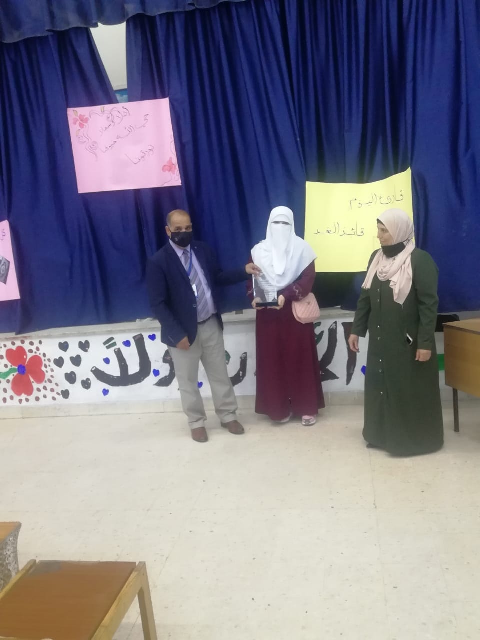 تشرفت مدرسة خديجة بنت خويلد اليوم الخميس بزيارة مدير الشؤون التعليمية والفنية د. أحمد الشرفات حيث قام عطوفته بتكريم نخبة مميزة من طالبات المدرسة اللواتي شاركن في مسابقتي تلاوة القرآن الكريم وتحدي القراءة وفوزهن بالمراكز المتقدمة بمسابقة القرآن الكريم على مستوى المديرية ومسابقة تحدي القراءة على مستوى المملكة وقام ايضاً بتكريم المعلمات اللواتي أشرفن على تدرييبهن ومتابعتهن، وأثنى على الجهود المبذولة من مديرة المدرسة والهيئة التعليمية والإدارية.