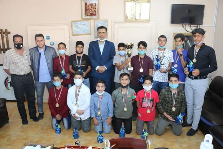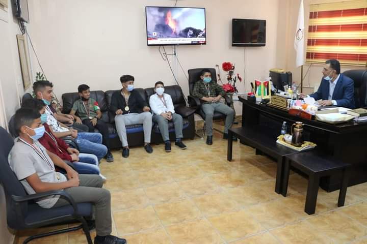 د. محمد الشقيرات اليوم الثلاثاء الموافق ٢٠٢١/٨/١٧م فريق كرة قدم مديرية البترا لحصولهم على المركز الاول على مستوى المملكة في بطولة مئوية الدولة الاردنية لخماسي كرة القدم للمرحلة الاساسية الدنيا،بحضور مدير الشؤون الادارية والمالية الاستاذ علي النعيمات وقسم النشاطات بالمديرية حيث وجه عطوفته كلمة للفائزين مهنئا اياهم وداعيا الى المزيد من الانجاز والابداع ،وقد تسلم عطوفته كاس الفوز من الفريق الفائز بقيادة المدرب زيد السعيدات.