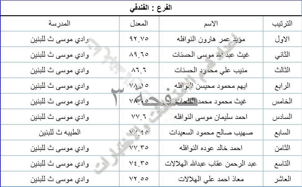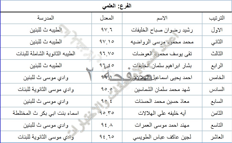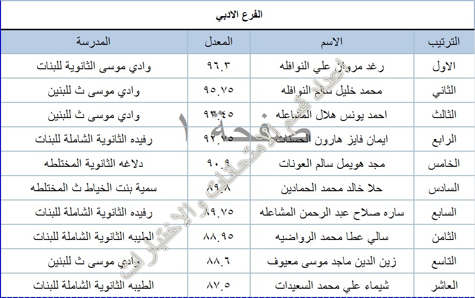 اعلان كشف اسماء الاوائل بالثانوية العامة على مستوى لواء البترا.