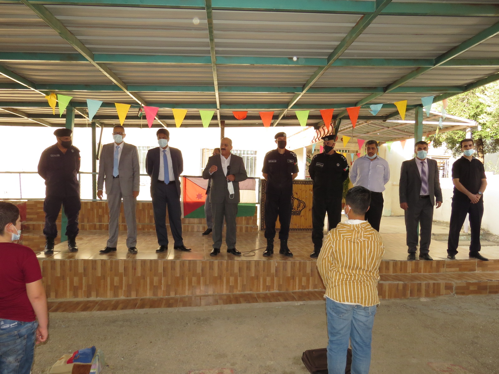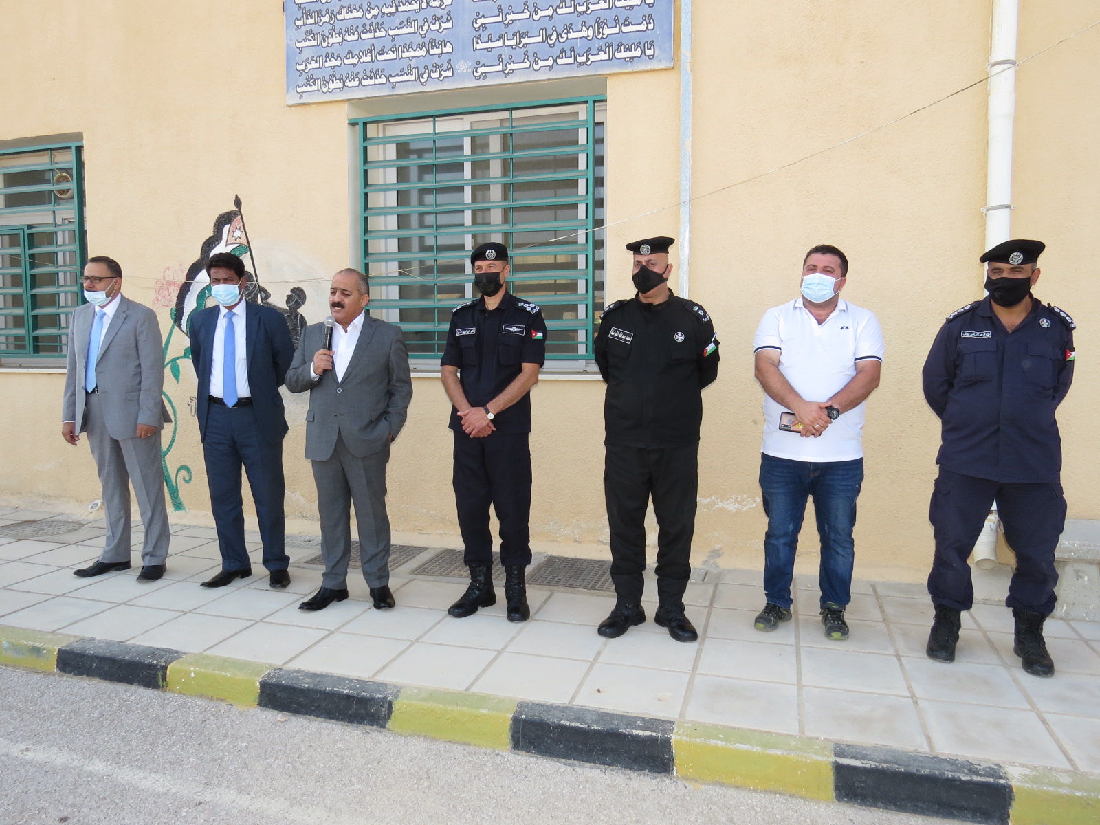 عطوفة مدير التربية والتعليم رحب بالحضور، والطلبة والمعلمين والمعلمات، وأثنى على الجهود المميزة في استقبال أبناءنا الطلبة للعام الدراسي، وتوفير ما يلزم لعودة آمنة لأبنائنا الطلبة، متمنياً لهم كل التوفيق وبداية موفقة لعام دراسي جديد، مع التأكيد على إتباع البرتوكول الصحي والاشتراطات الصحية، لعودة آمنة للطلبة، وأشار عطوفته إلى الدور الهام للحاكمية الإدارية، وجهاز الأمن العام في حفظ الأمن والنظام وحماية الأرواح والممتلكات.
