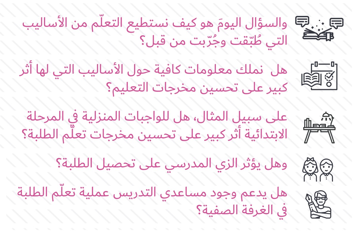 يسعى المعلمون حول العالم إلى تحسين مستوى التعليم المقدّم في صفوفهم، ومعالجة الثغرات التي يلاحظونها في تعلّم طلبتهم، والتي عادةً ما تكون متشابهة في معظم الأنظمة التعليمية حول العالم.