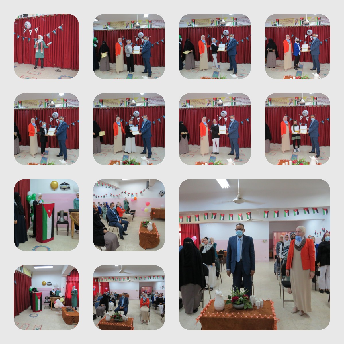 عطوفة مدير التربية والتعليم سلم الشهادات لمستحقيها من الطالبات المتوفقات، ويتقدم بالتهنئة والتبريك للطالبات المتوفقات على جهودهن، مع تمنياتنا لهن بمزيد من التقدم والنجاح والعطاء تحت ظل الراية الهاشمية بقيادة حضرة صاحب الجلالة الملك عبدالله الثاني ابن الحسين المعظم حفظه الله ورعاه.