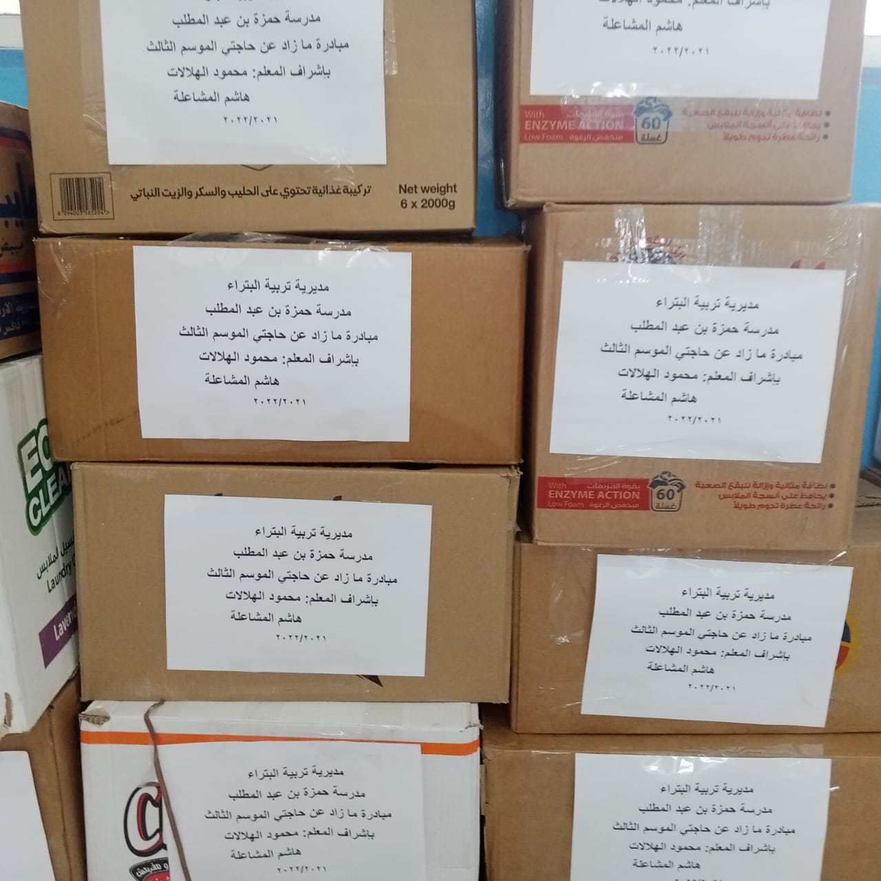 تنفيذ مبادرة - ما زاد عن حاجتي - المرحلة الثالثة في مدرسة ذكور حمزه بن عبد المطلب الاساسية.من خلال جمع الملابس الزائده