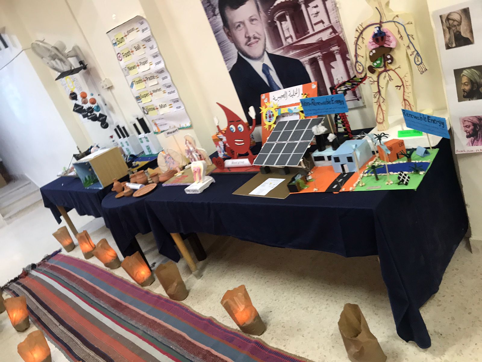 نظمت مدرسة الطيبة الثانوية الشاملة للبنات فعالية اطلقت عليها اسم ( English day) اليوم الاربعاء الموافق 2022/3/30 برعاية عطوفة مدير التربية والتعليم السيدة انتصار الحمايدة قدمت فيها الطالبات عروض تقديمية لمواضيع متنوعة باللغة الإنجليزية وعرض بعض الوسائل التعليمية كمجسمات ونماذج من عمل طالبات المدرسة بطريقة مميزة ، حيث اثنت عطوفتها على هذه الجهود المبدعة مؤكدة على الدور المهم لتعزيز الابداع وخلق الدافعية والاثارة لدى الطالب ليتمكن من ابتكار أفكار جديدة تؤثر بشكل إيجابي على عملية تعلمه، وقد افتتحت عطوفتها معرضاً لوسائل تعليمية خاص بمبحث الجغرافيا احتوى على وسائل تعليمية ومجسمات لظواهر جغرافية متنوعة من عمل الطالبات وباشراف معلمة المادة.