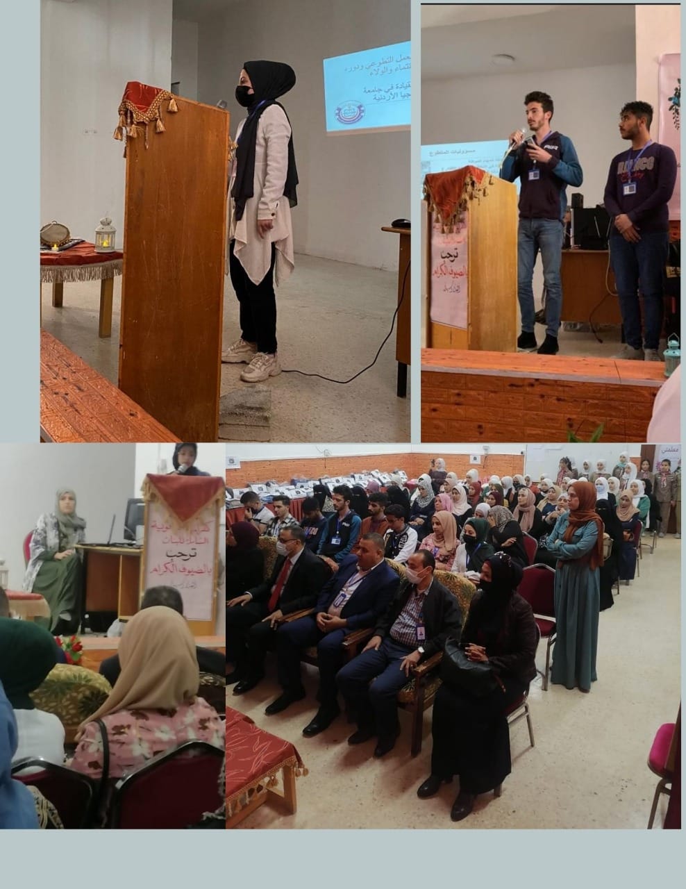 وتضمنت الفعاليات عرض توضيحي حول أهمية العمل التطوعي في غرس قيم الانتماء والولاء قدمه عدد من طلاب جامعة العلوم والتكنولوجيا الأردنية الرائدين في مجال العمل التطوعي، داعين الجميع للتوجه نحو البذل والعطاء والتطوع لخدمة المجتمع.
